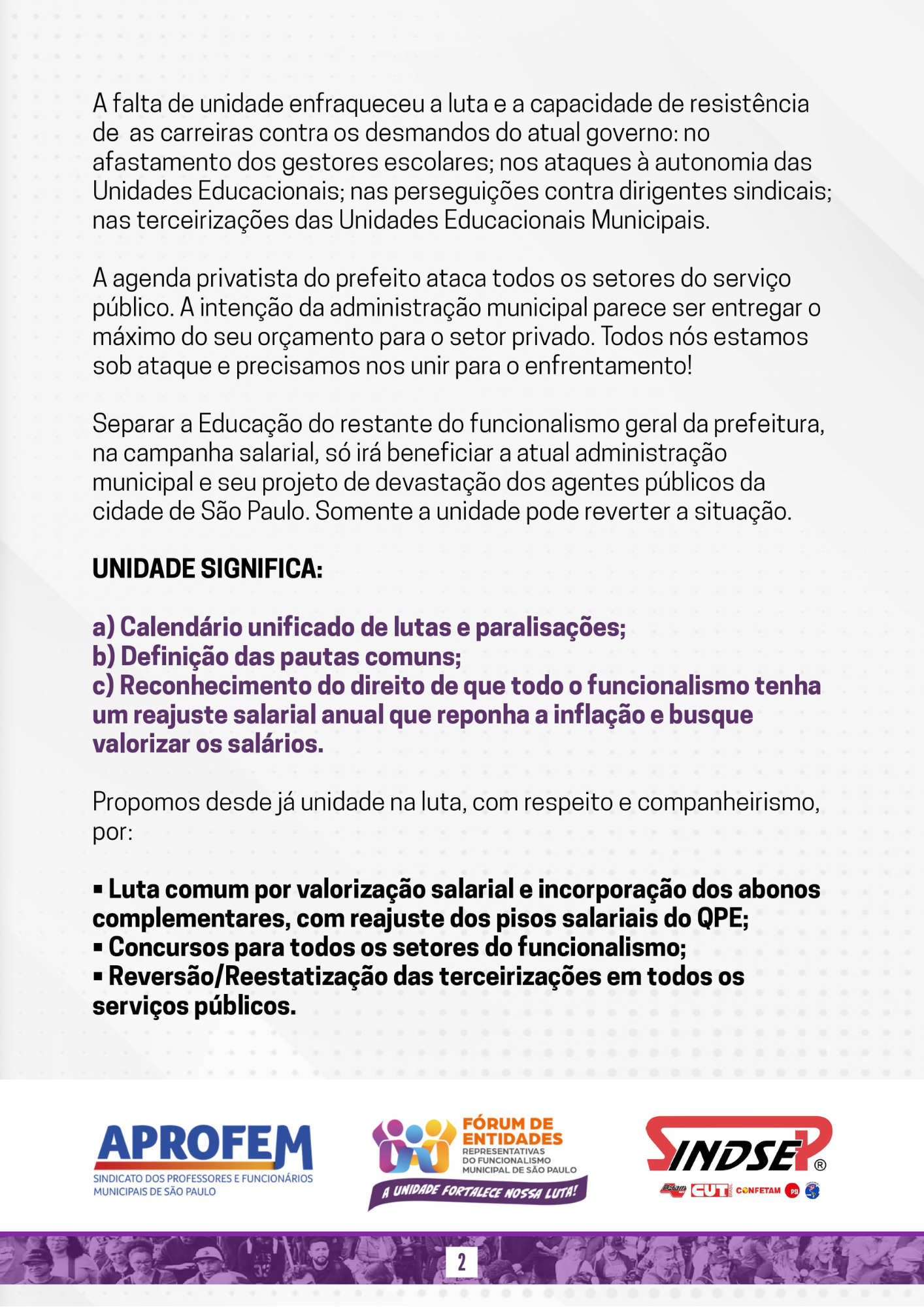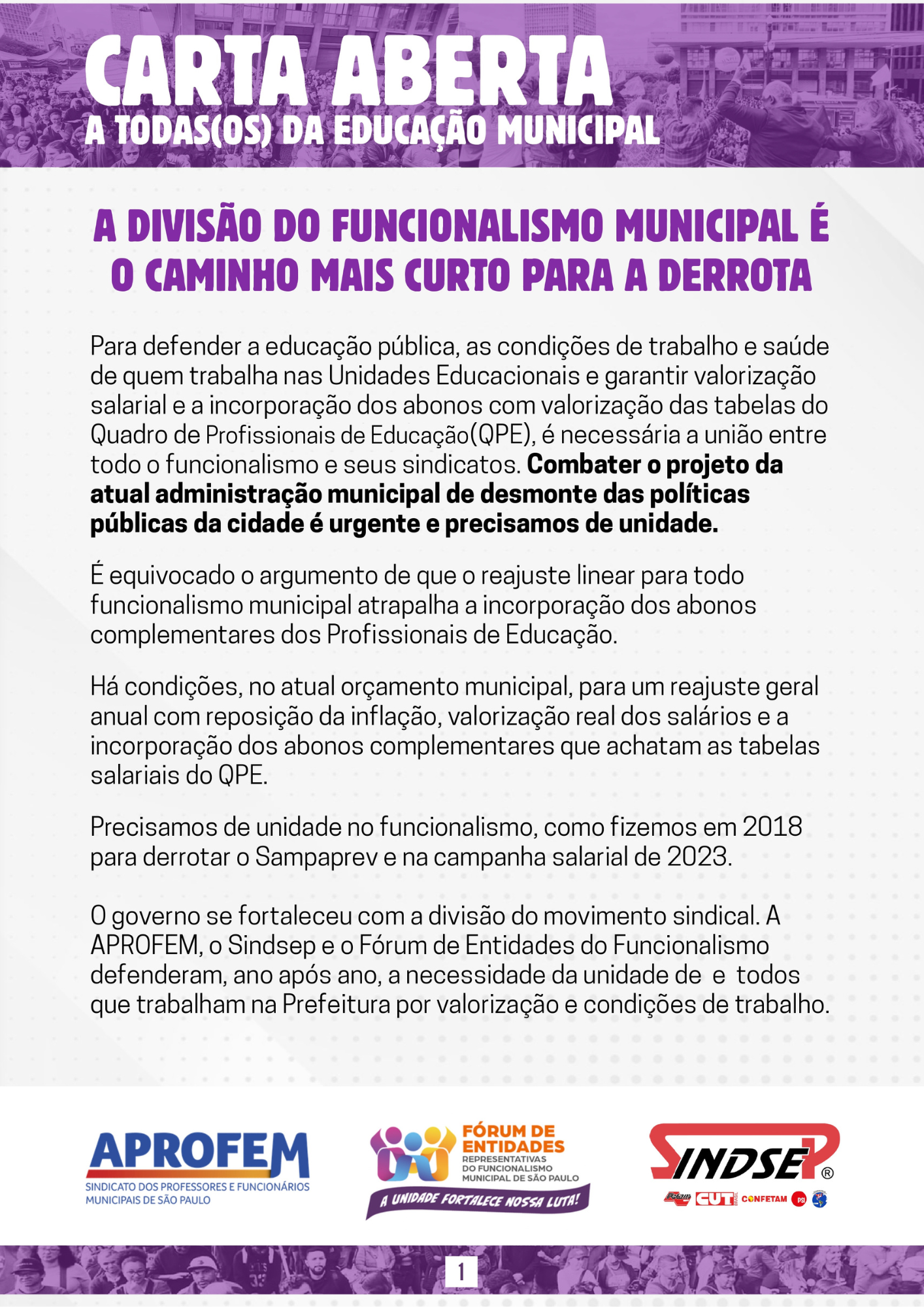 Carta aberta a todas(os) da Educação Municipal
